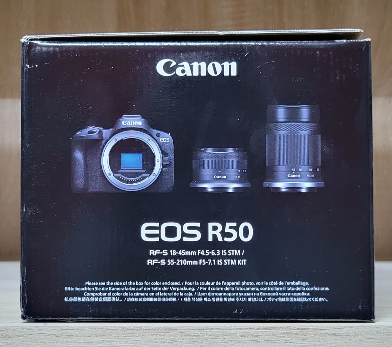 Bundling a sophisticated camera body with two versatile lenses, the Canon EOS R50 Mirrorless Camera with 18-45mm and 55-210mm Lenses pairs the black multimedia mirrorless camera with the RF-S 18-45mm f/4.5-6.3 IS STM standard zoom lens and the RF-S 55-210mm f/5-7.1 IS STM telephoto zoom lens.