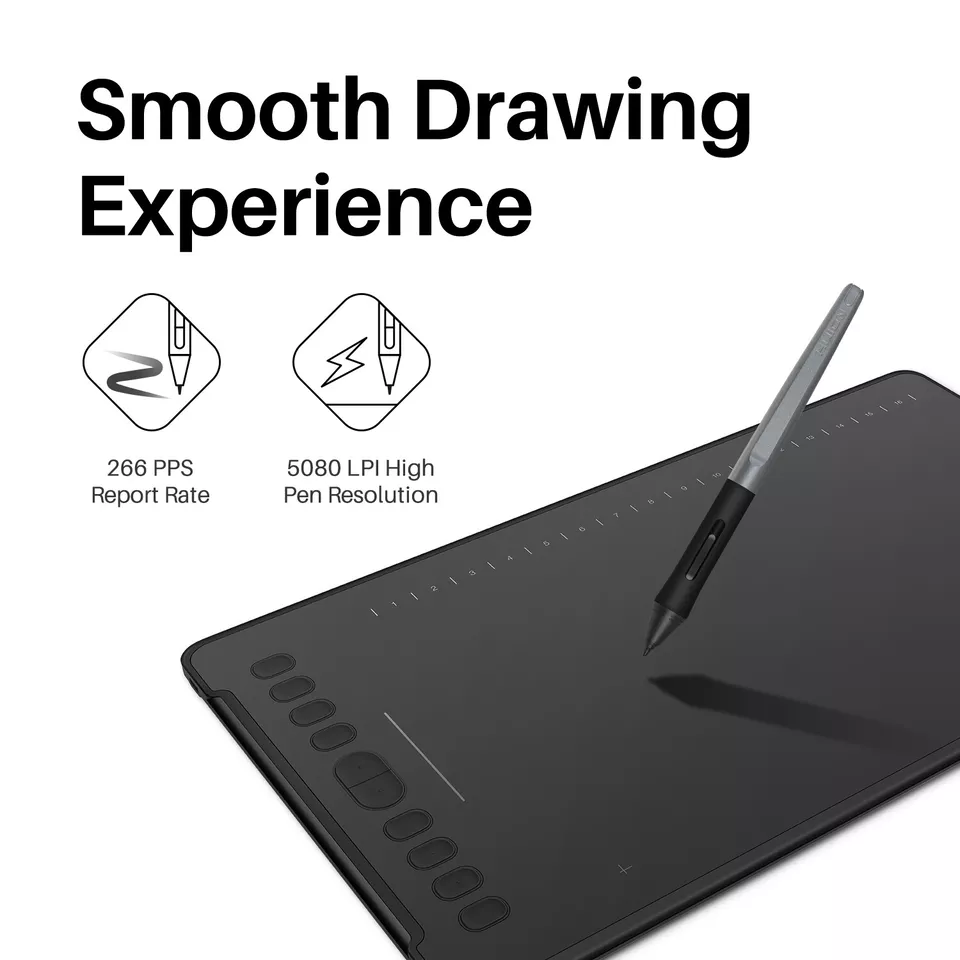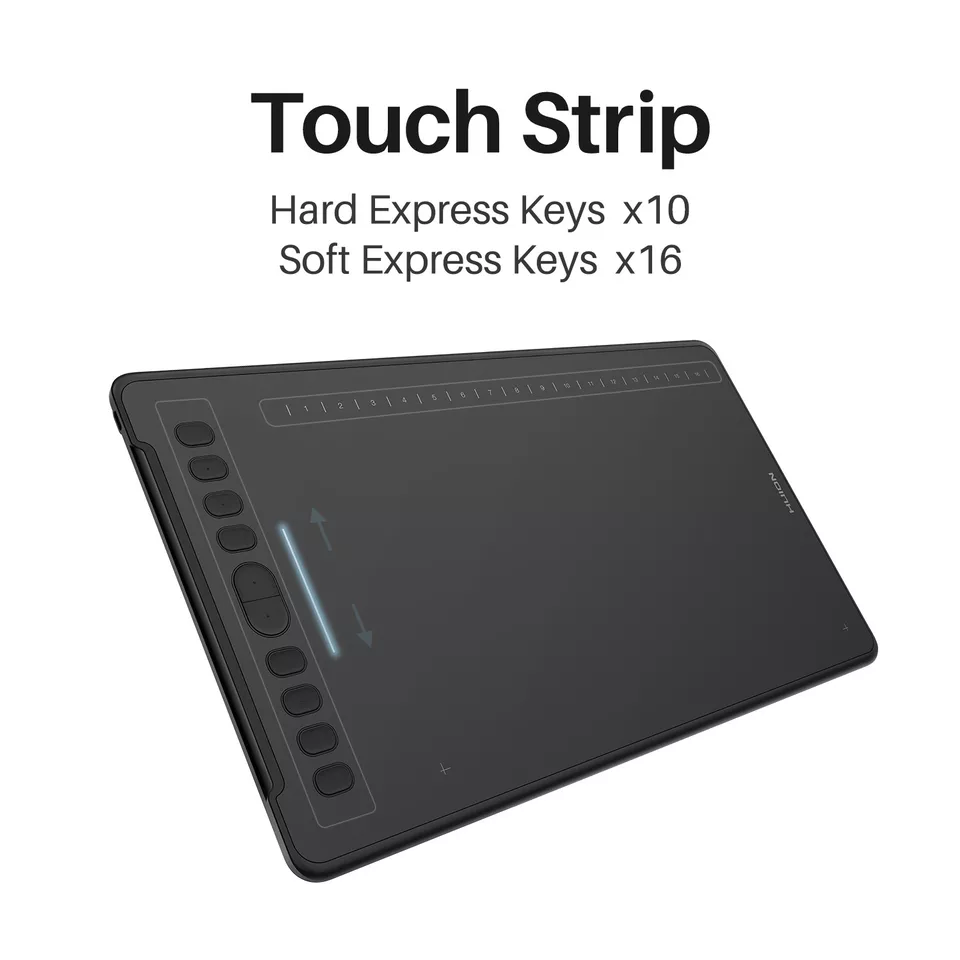 Narrow border and slim compact design makes H1161 an eye-catchy option. Extended 11inch drawing area made with high end material aims at offering larger working space and paper-like texture. with an added touch strip and 10 customizable express keys, your work flow could be optimized to a new level.