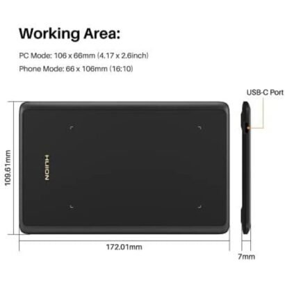 H420X is thinner and easy to carry with 7mm thickness and 105g weight. H420X ensures a larger and more free working area.USB-C interface with now press keys, easy to plug in and out.