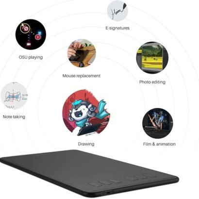 H640P art tablet is designed with slim and compact sized with an active area of 6.3×3.9 inch offering perfect creative space for limited desktop areas.It is easy to carry out and always ready for your creation whenever and wherever. HUION drawing tablets come with one year warranty and they are also very practical gift option.