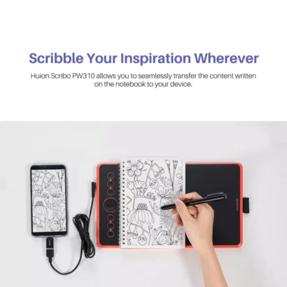 Take note with Huion Scribo PW310, it’s a digital pen allows you to seamlessly transfer the content written on the notebook to your device. You can use it to record everything you need meeting/work. Note:The thickness of notebook should not exceed the 10mm senseing height.