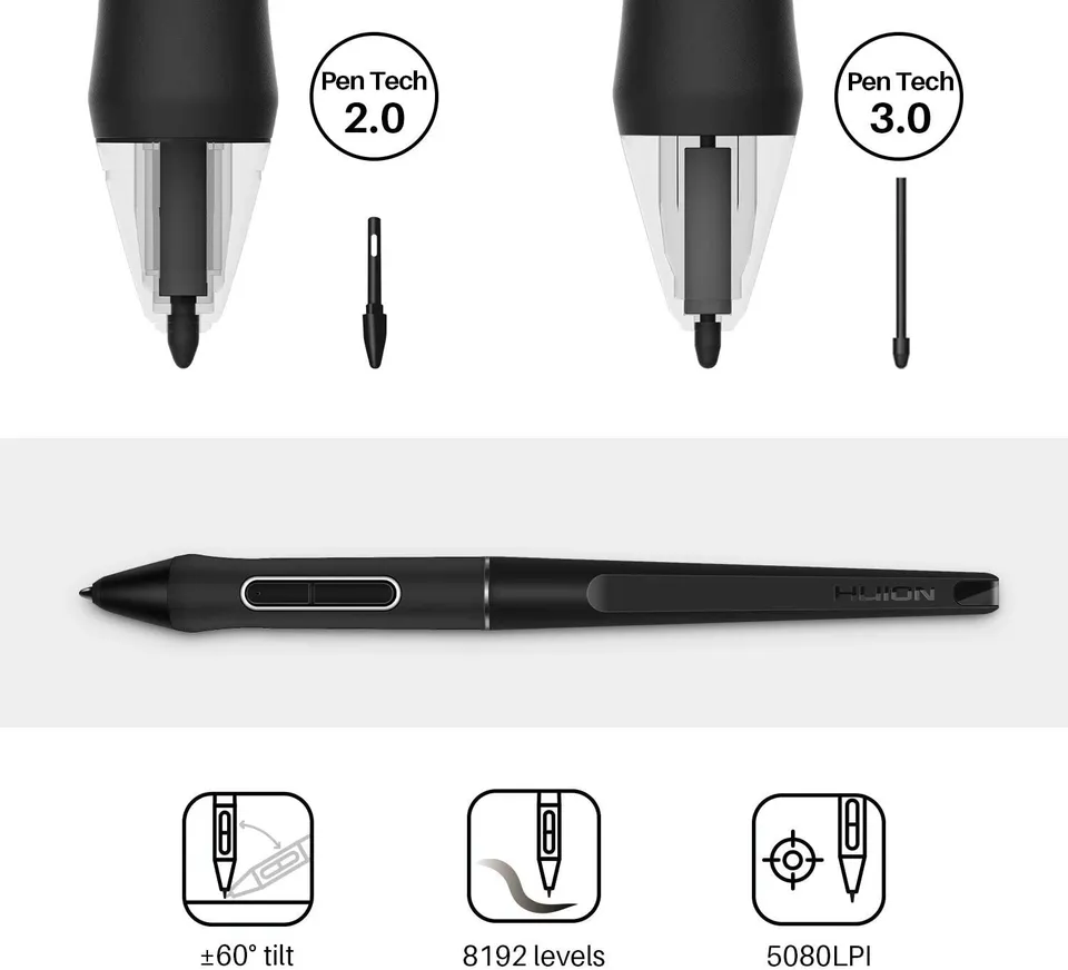 With Huion PenTech 3.0 technology, the battery-free pen PW517 is optimized with a highly-sensitive and stable pen nib to ensure a more lifelike drawing experience as you′re using a regular ballpoint pen.