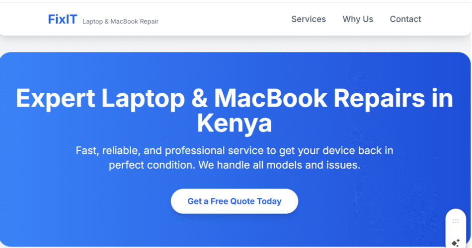 Expert laptop & MacBook repair in Kenya. Fast, affordable, and professional service for all brands. Screen replacement, battery, motherboard repair, and more.