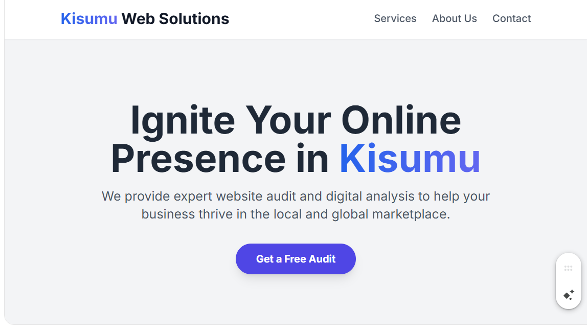 Boost your Kisumu business online. We provide in-depth website audits for SEO, performance, and user experience. Get your free report today.